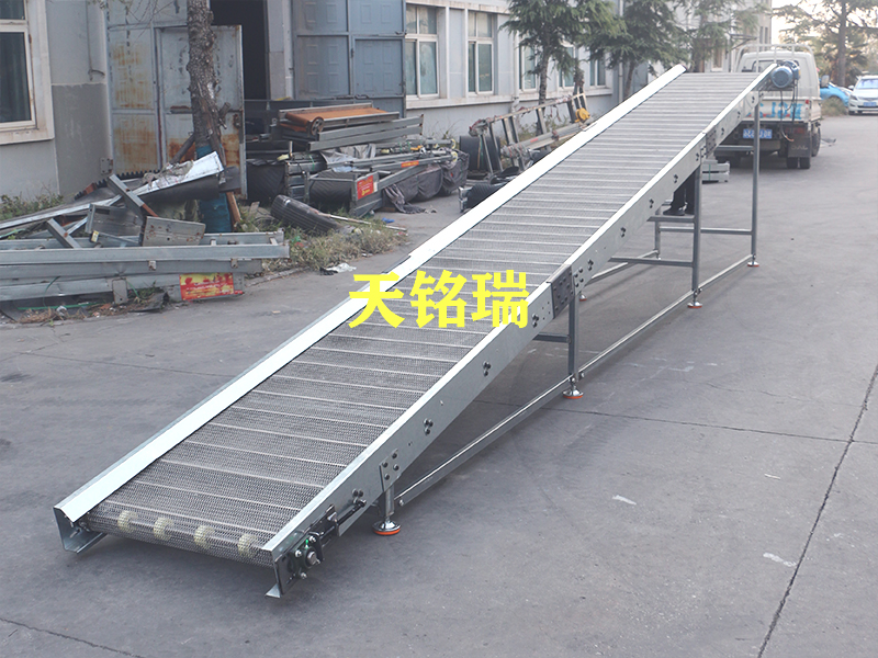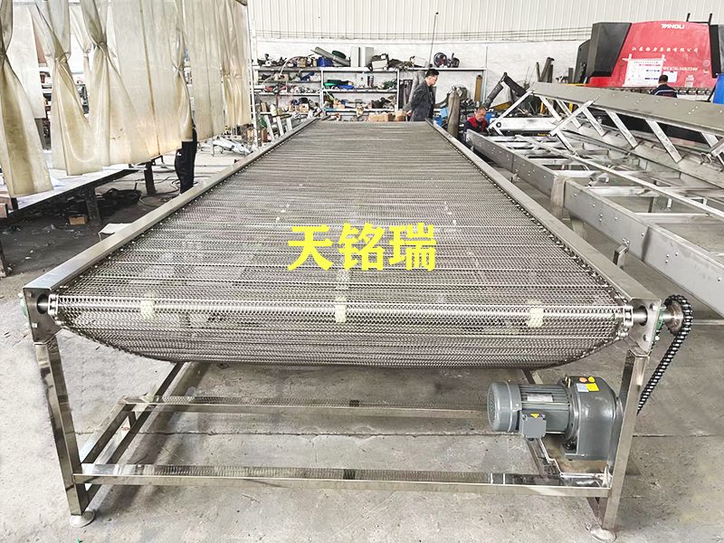 工作原理:网带是由链网或窜杆或链片固定于轨道链条上,电机驱动主动轴,链轮带动链条转动,达到机器运转效果。